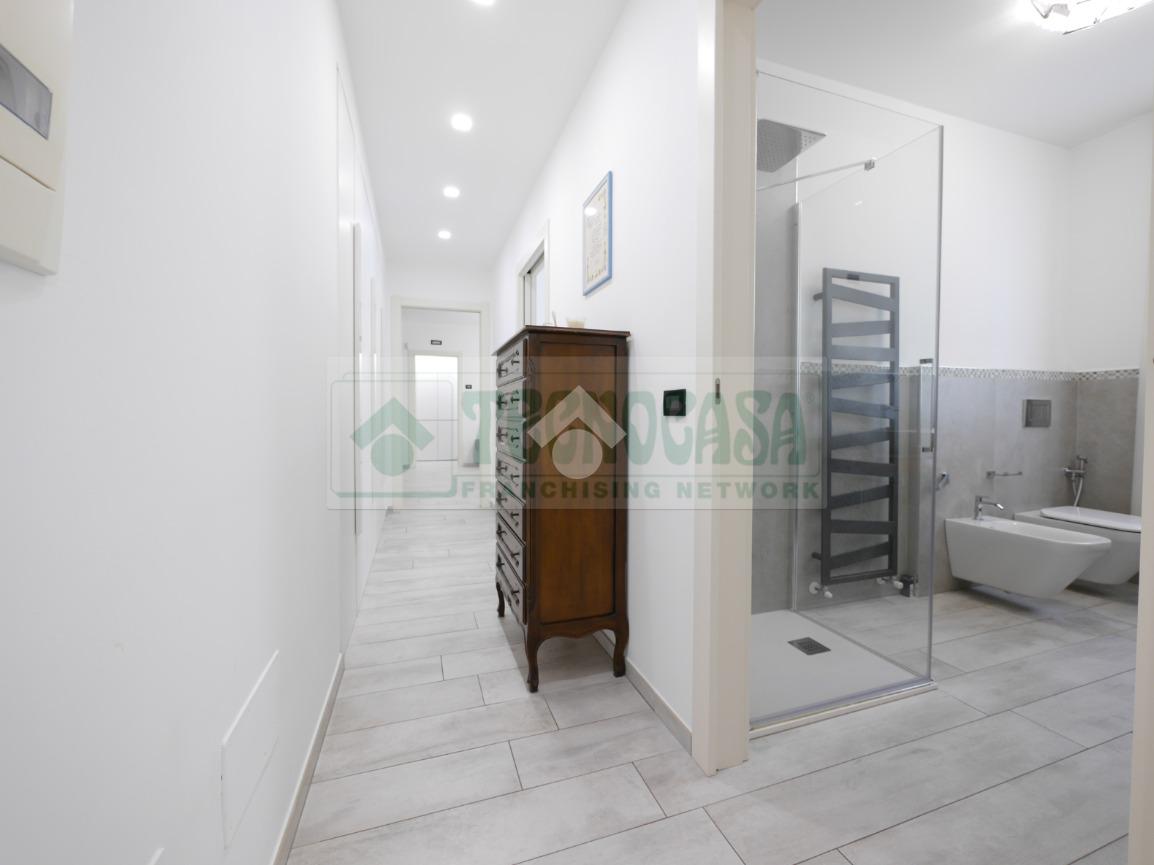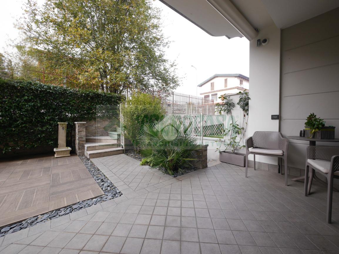 Calcio- Signorile abitazione con giardino. Il cancello pedonale esclusivo dà l'accesso all'area esterna di circa 80 mq, rivestita in parte con piastrelle e in parte con erba sintetica e aiuole verdi. Sotto il portico si può collocare un tavolo con le sedie e organizzare dei piacevoli momenti in compagnia. La scala antistante conduce al comodo box. Dal principale ingresso si entra nel soggiorno. L'ambiente si presenta curato e giovanile; le piastrelle sono in gres effetto legno e il riscaldamento è a pavimento. L'illuminazione è caratterizzata da lampadari, strisce a led e faretti a soffitto. La zona cottura è contraddistinta da una moderna cucina con penisola per le colazioni e/o pranzi veloci ed è completa di tutti gli elettrodomestici. La zona relax è illuminata da una grande porta finestra che esce sul giardino. Il lungo corridoio della zona notte serve tutte le stanze e vi è collocato un capiente armadio. Il bagno di servizio ha uno stile contemporaneo ed è dotato di doccia. Nella camera da letto adiacente si possono mettere due letti e ospita un grande armadio. La camera matrimoniale è di circa 20 mq: ha l'uscita sul giardino e ha un ampio armadio. Nell'antibagno collegato è stata ricavata una lavanderia con armadiatura su misura; il bagno è dotato di una generosa doccia walk-in. Inclusa nella proprietà una cantina. Compresi nel prezzo: arredo cucina completa di elettrodomestici, aria condizionata con n°3 split + 2 motori, impianto di allarme con sensori interni ed esterni + telecamere, zanzariere, arredo lavanderia, 2 box doccia, armadi corridoio e cameretta.