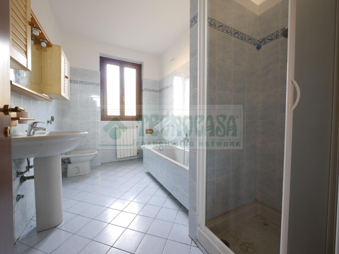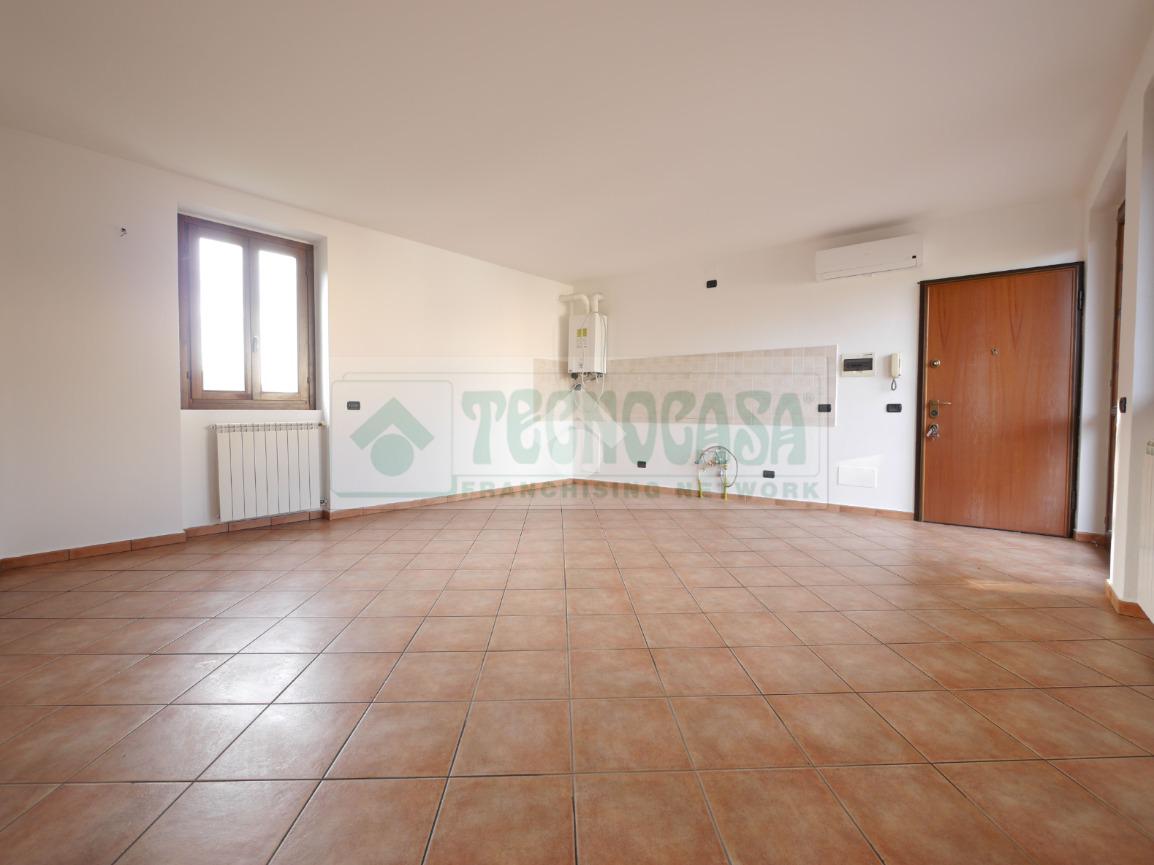 Pumenengo- Appartamento al piano primo di recente costruzione. Soggiorno/cucina con uscita sul balcone, lungo disimpegno con possibilità di posizionare un armadio, bagno con vasca e doccia, cameretta, camera matrimoniale con bagnetto esclusivo. Posto auto coperto nel cortile condominiale, chiuso da cancello elettrico. Incluso l'impianto di aria condizionata comprensivo di n°2 split + motore.