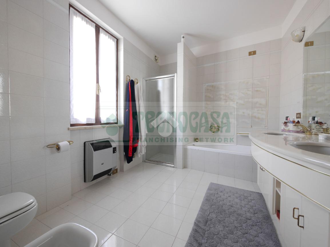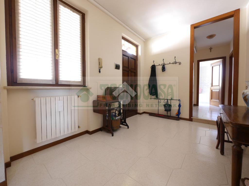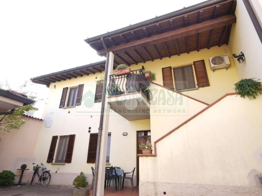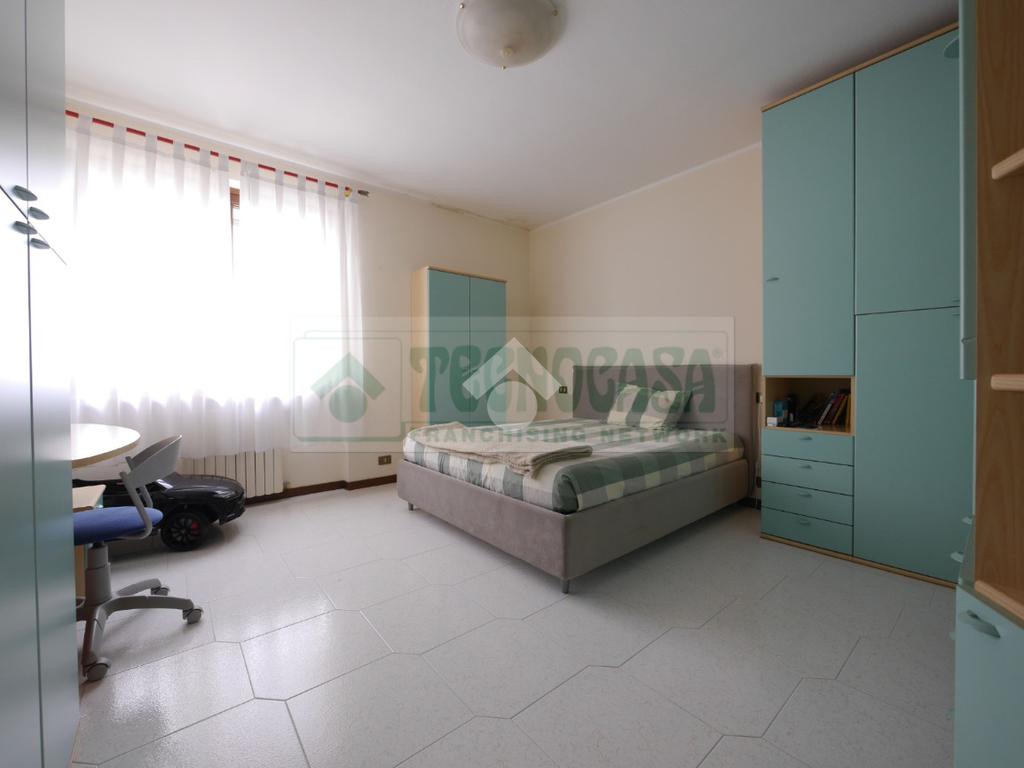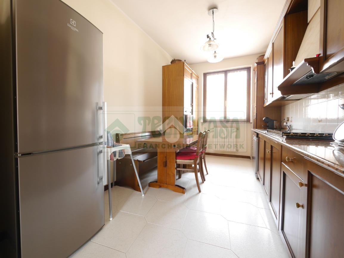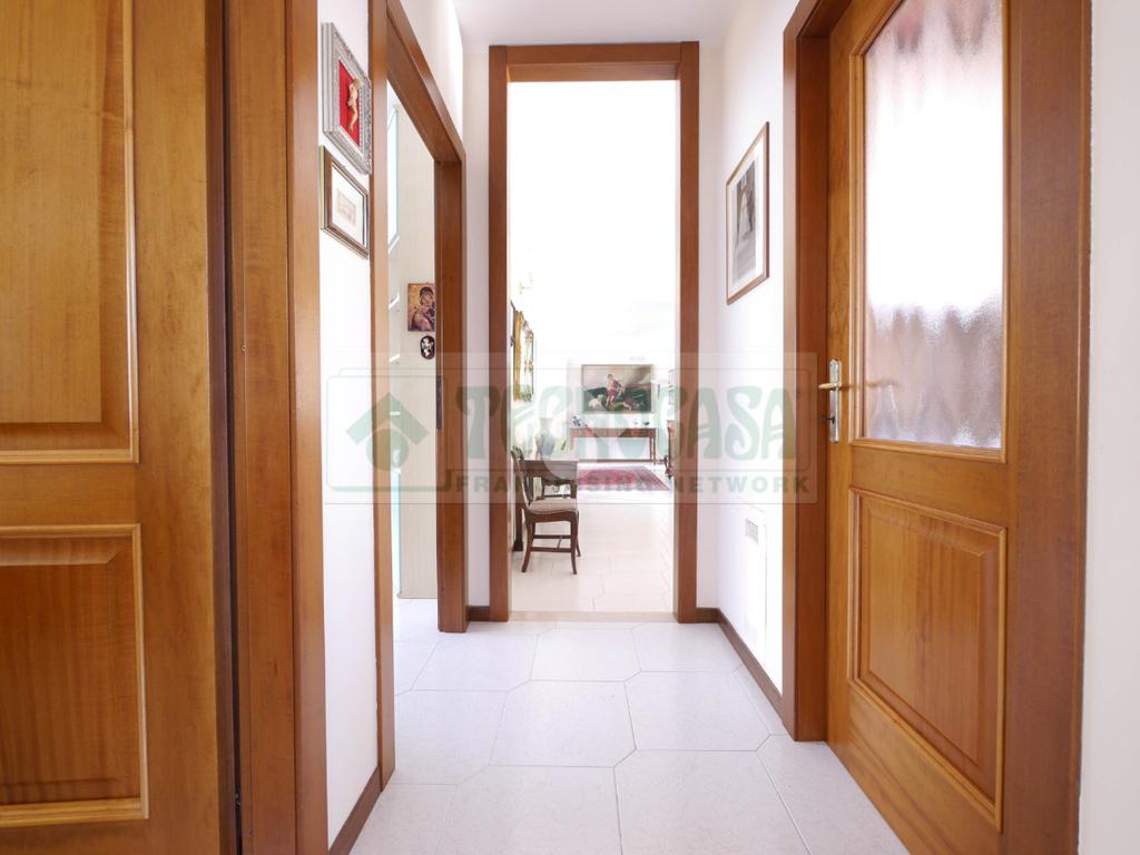 Roccafranca- Grande e ben tenuto appartamento, in contesto di 2 famiglie. Dal cortile in comune con un solo immobile, si sale la scala (riparata dalla tettoia) fino ad arrivare al balcone che dà l'accesso all'abitazione. Lo spazioso ingresso conduce al salone, impreziosito da una bellissima boiserie in legno su 2 pareti e riscaldato da un camino a legna ventilato. La cucina collegata è abitabile. Il disimpegno della zona notte, conduce alle altre stanze. La camera da letto dei bambini è di circa 18 mq; la camera matrimoniale è illuminata da graziosi faretti a soffitto e servita da una cabina armadio. Lo spazioso bagno, è dotato di doppio lavandino, vasca e doccia. La lavanderia ospita un lavabo, la lavatrice, l'asciugatrice e la caldaia. La proprietà si completa con un garage di circa 15 mq; la basculante è automatizzata. Immobile finito con: infissi in legno con doppio vetro, zanzariere, caldaia a condensazione di 4 anni, boiserie in legno, camino a legna ventilato. impianto di aria condizionata con n°2 split + motore, mobile con doppio lavandino, cabina armadio con arredo.