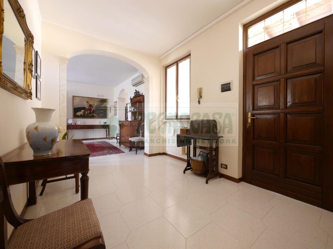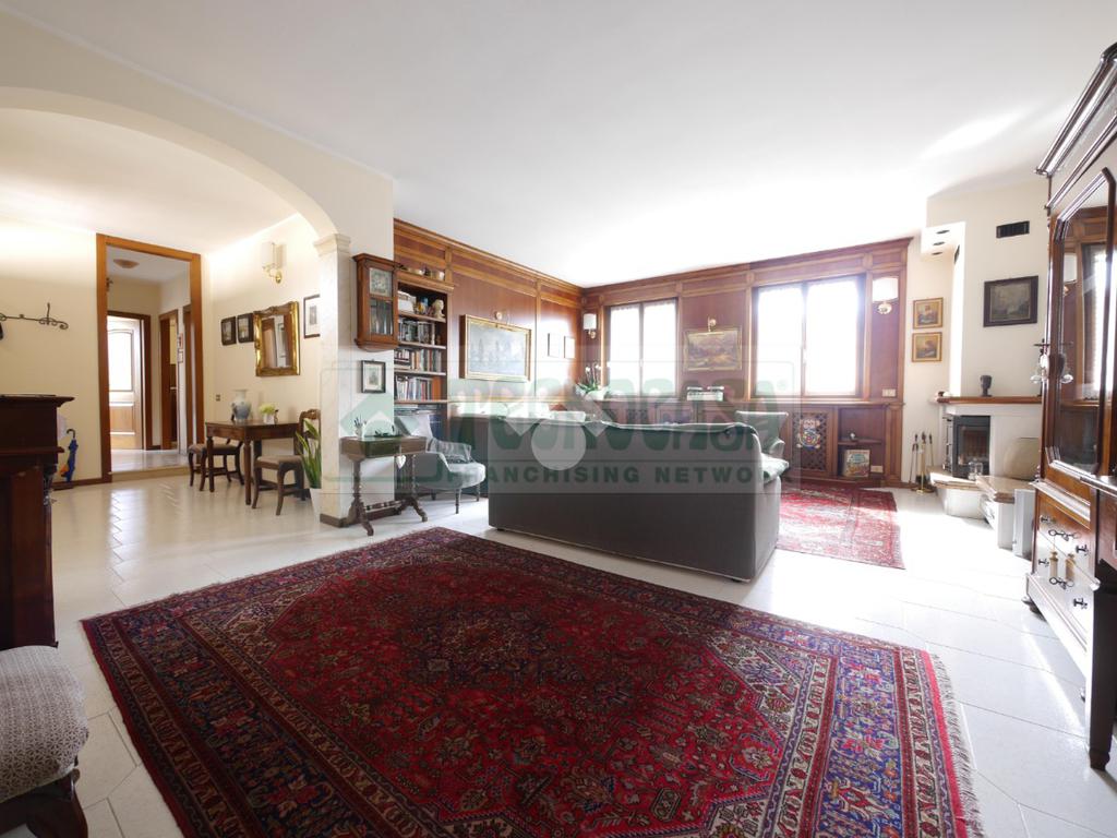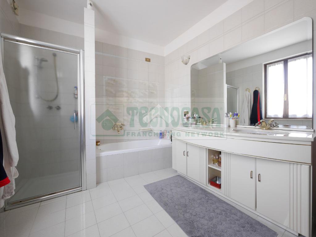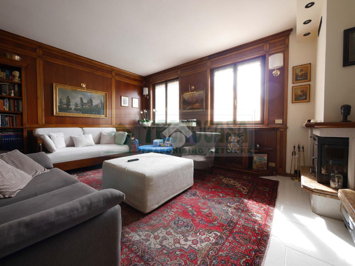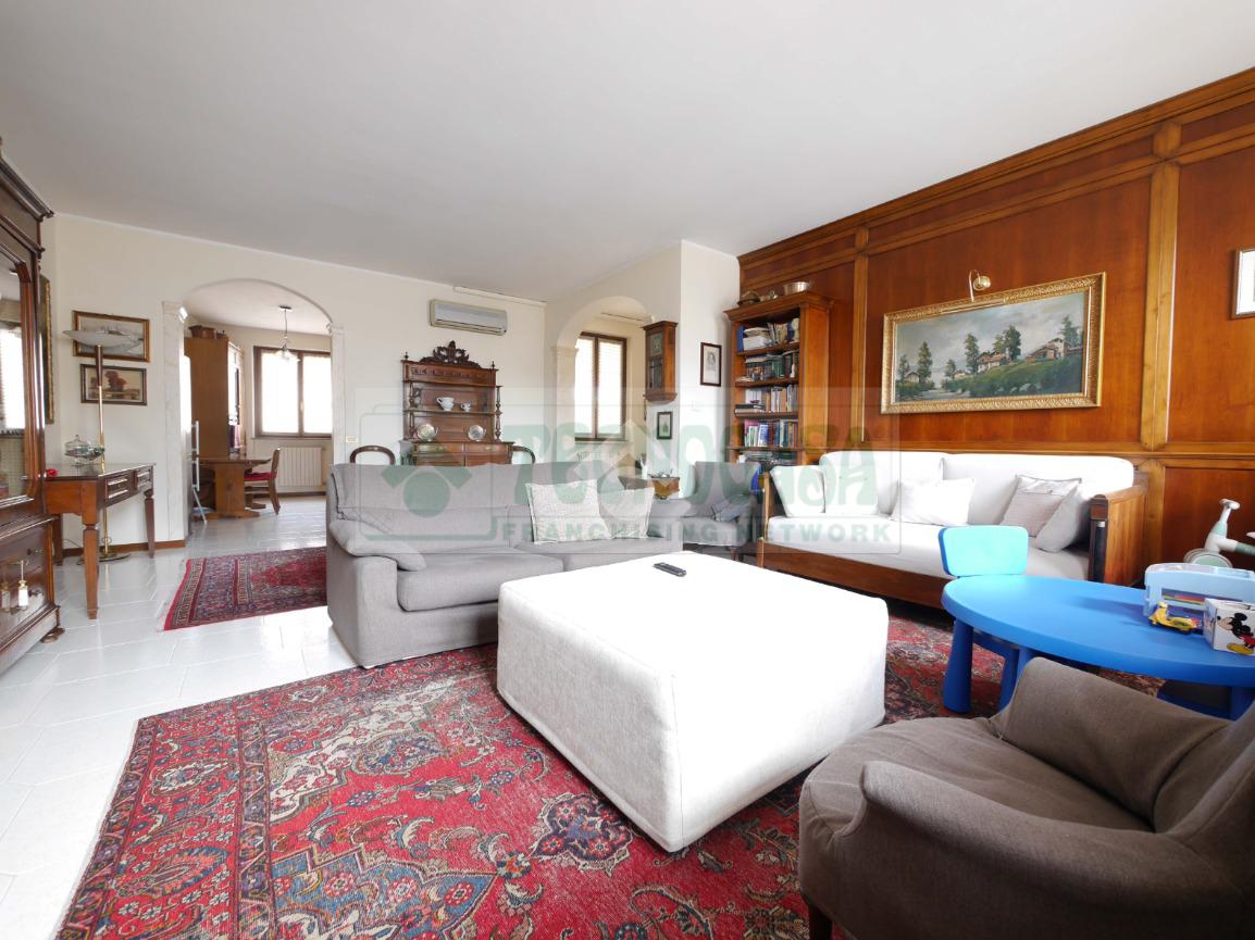 Roccafranca- Grande e ben tenuto appartamento, in contesto di 2 famiglie. Dal cortile in comune con un solo immobile, si sale la scala (riparata dalla tettoia) fino ad arrivare al balcone che dà l'accesso all'abitazione. Lo spazioso ingresso conduce al salone, impreziosito da una bellissima boiserie in legno su 2 pareti e riscaldato da un camino a legna ventilato. La cucina collegata è abitabile. Il disimpegno della zona notte, conduce alle altre stanze. La camera da letto dei bambini è di circa 18 mq; la camera matrimoniale è illuminata da graziosi faretti a soffitto e servita da una cabina armadio. Lo spazioso bagno, è dotato di doppio lavandino, vasca e doccia. La lavanderia ospita un lavabo, la lavatrice, l'asciugatrice e la caldaia. La proprietà si completa con un garage di circa 15 mq; la basculante è automatizzata. Immobile finito con: infissi in legno con doppio vetro, zanzariere, caldaia a condensazione di 4 anni, boiserie in legno, camino a legna ventilato. impianto di aria condizionata con n°2 split + motore, mobile con doppio lavandino, cabina armadio con arredo.