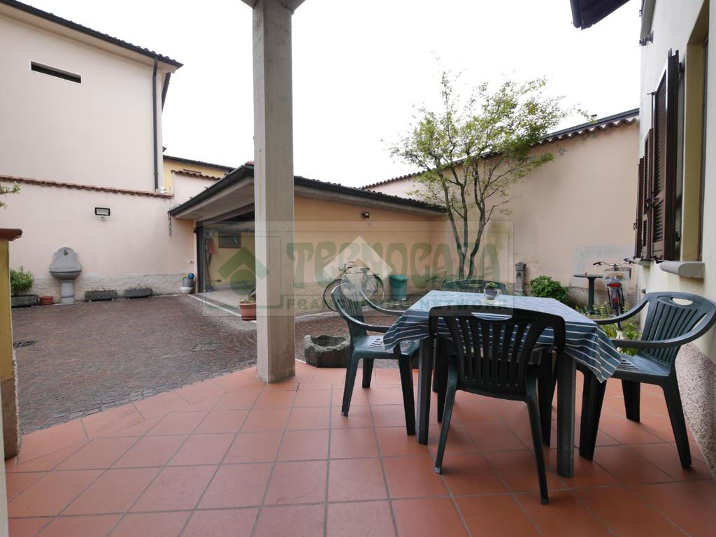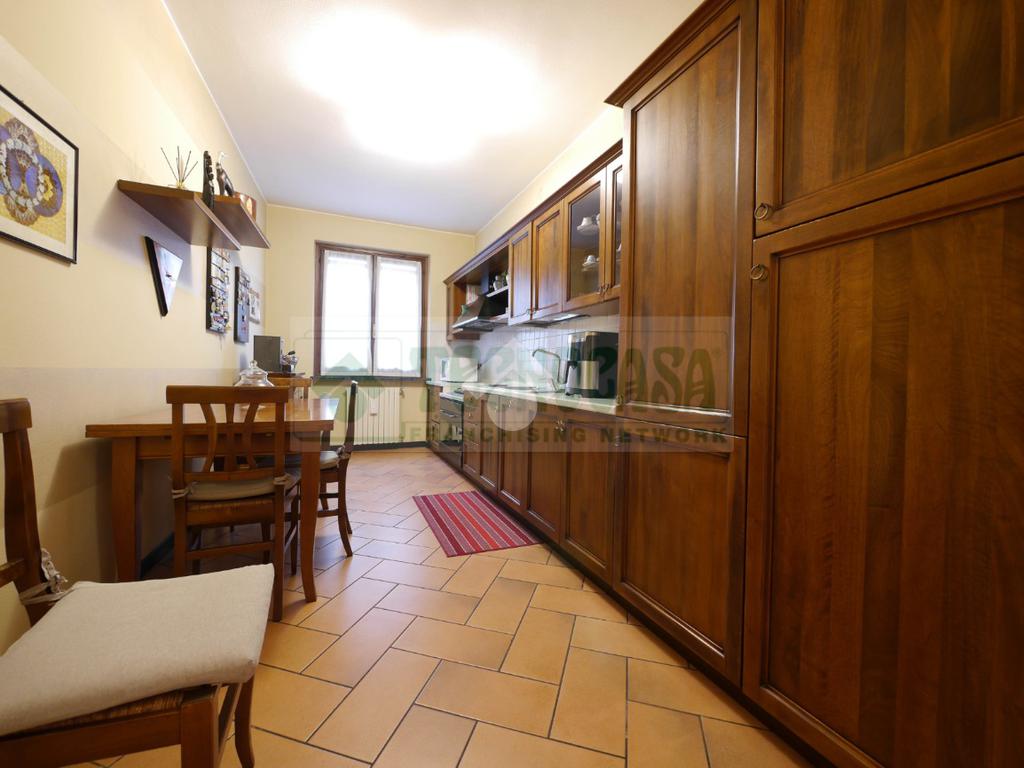 Roccafranca- Abitazione al piano terra di grandi dimensioni, in contesto bifamiliare. Il cortile di circa 90 mq è in comune con una sola famiglia ed è chiuso da cancello. Il portico dà l'accesso all'abitazione. Dallo spazioso ingresso si và nel soggiorno. L'adiacente cucina ospita un arredo completo di tavolo e sedie. Il disimpegno conduce alle due camere da letto matrimoniali (circa 19 mq ciascuna). Il bagno è caratterizzato dalla presenza della doccia e della vasca. La lavanderia ospita un lavabo, la lavatrice, l'asciugatrice e la caldaia. Non manca un utile ripostiglio ricavato nel sottoscala. La proprietà si completa con un garage di circa 15 mq; la basculante è automatizzata. Immobile finito con: infissi in legno con doppio vetro, zanzariere, caldaia a condensazione del 2017.