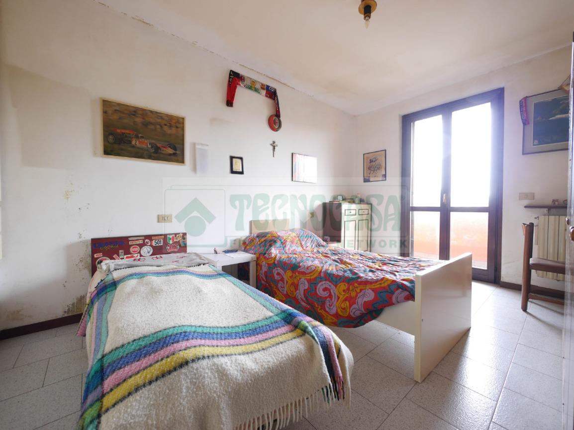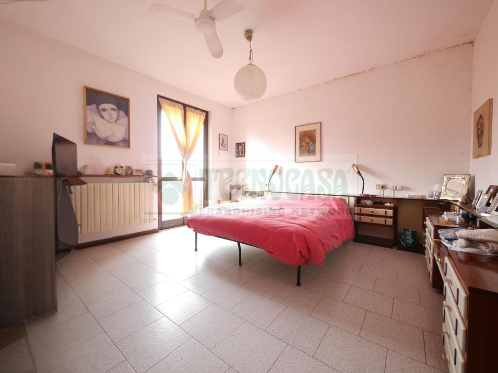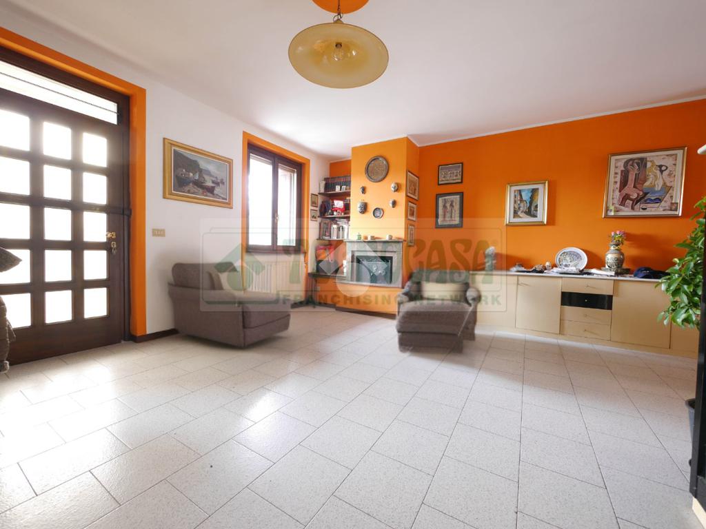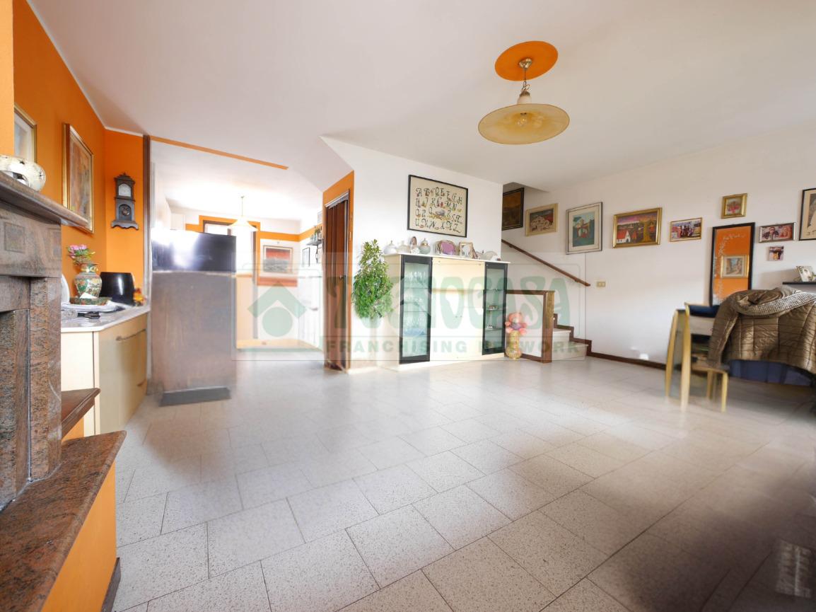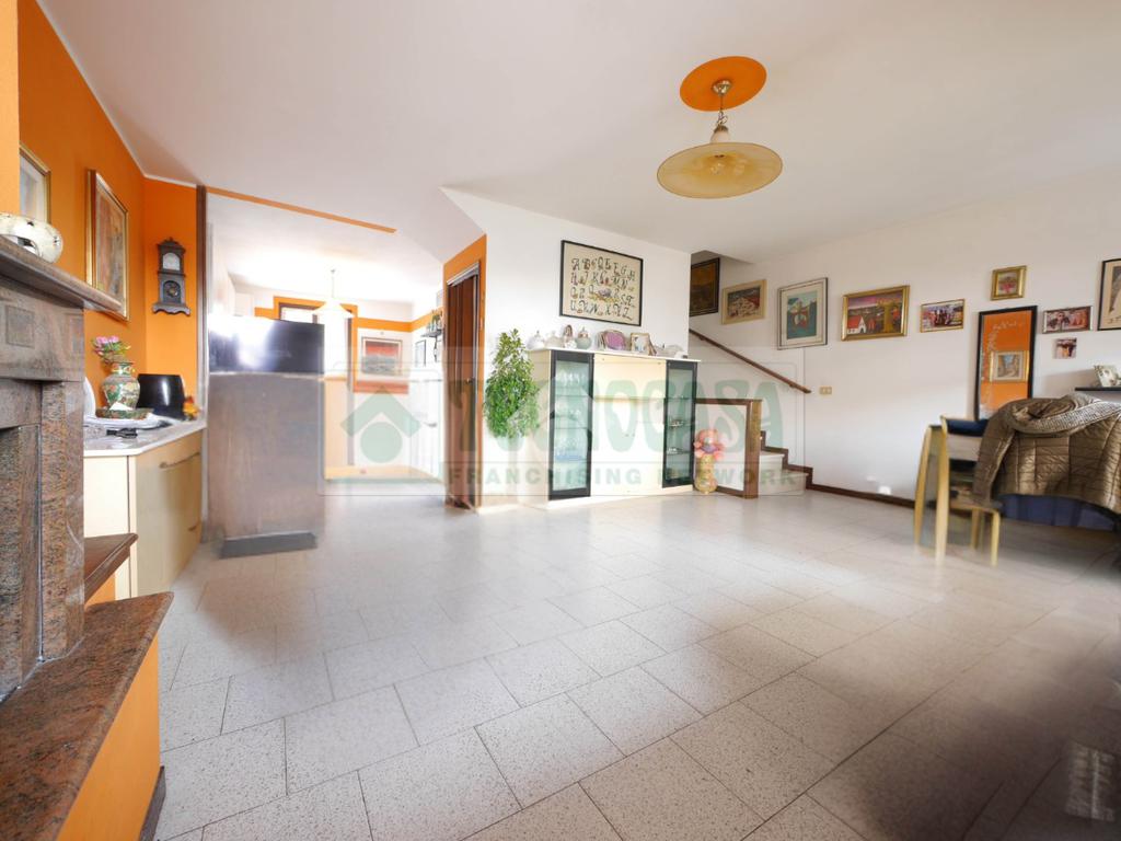 Urago d'Oglio- VENDESI NUDA PROPRIETÀ VILLA A SCHIERA DI TESTA. L'area esterna che circonda la villa su 3 lati è di circa 215 mq. Il cancello carraio autonomo conduce al box singolo posto al piano terra. Il portico dà l'accesso all'abitazione. Il soggiorno dispone di camino a legna ed è comunicante con la cucina abitabile, la quale ha l'uscita sul cortile retrostante. Al piano primo la camera matrimoniale e la camera doppia sono complete di balcone; la cameretta è antistante al bagno con vasca. Nell'interrato la grande taverna è adiacente al bagno/lavanderia.